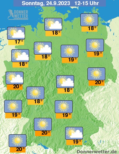 Heute Nachmittag scheint verbreitet die Sonne und es ziehen höchstens lockere Wolken durch. Vor allem über der Südosthälfte bleibt es auch häufig wolkenlos. Bei Werten von 17 Grad an der Nordsee und 20 Grad in der Lausitz bleibt es trocken.