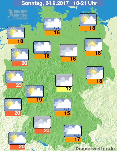 Heute Abend ist es über den westlichen Landesteilen meist heiter und dabei trocken. Weiter nach Osten hin bleibt die Wolkendecke hingegen oft verschlossen, hier und da lockert es aber auch auf, dazu bilden sich im Süden zeitweise, sonst nur noch vereinzelt Schauer. Die Temperatur liegt bei kühlen 12 Grad im Grabfeld und bis 23 Grad in Köln.