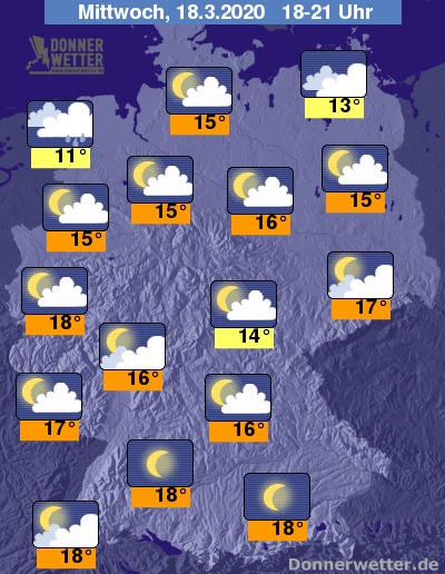 Heute Abend ziehen weiterhin viele und meist dichte Wolken über den Norden des Landes hinweg, dazu fällt vor allem im Nordseeumfeld und Schleswig-Holstein, aber auch an der Ostsee gebietsweise Regen. Weiter nach Süden hin ist es dagegen oft locker bis wechselnd bewölkt, nicht selten auch sternenklar, dazu bleibt es trocken. Die Abendwerte liegen anfangs noch bei sehr milden 11 bis 18 Grad.