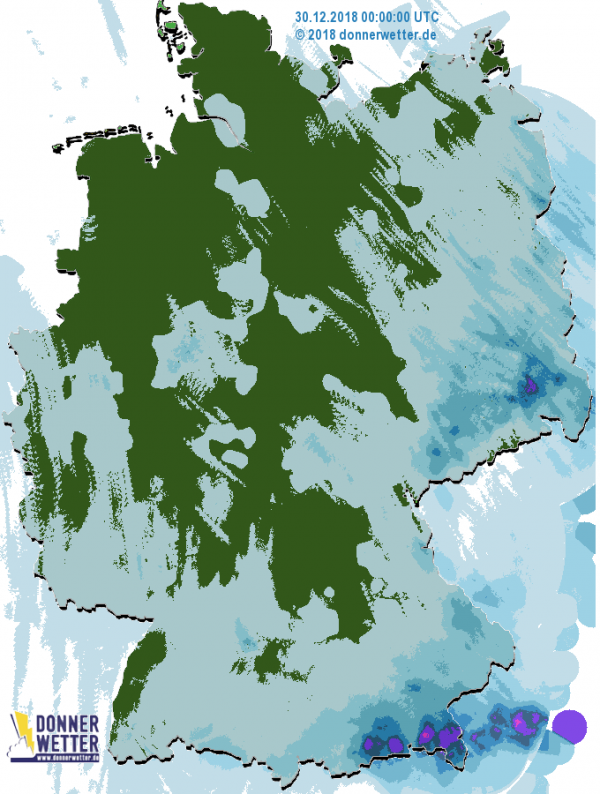 Am letzten Tag des Jahres zieht teils starke, zum Teil aber auch aufgelockerte Bewölkung durch, dabei sind im Südosten und Osten hier und da ein paar Tropfen oder Flocken möglich. Über der übrigen Republik bleibt es hingegen weitgehend trocken. Die Temperatur erreicht 4 Grad im Vogtland und bis 8 Grad im Rheinland.