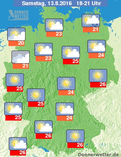 Heute Abend scheint über der gesamten Südhälfte Deutschlands verbreitet die Sonne und nur hier und da ziehen auch mal einige Wolken durch, dabei bleibt es trocken. Über Norddeutschland ist es jedoch auch oft aufgelockert und gebietsweise auch mal stärker bewölkt, zeitweise sind aber auch hier heitere Abschnitte möglich. Bis auf vereinzelte Schauer bleibt es trocken. Die Temperatur liegt bei 20 Grad an der Ems und um 26 Grad in Karlsruhe.
