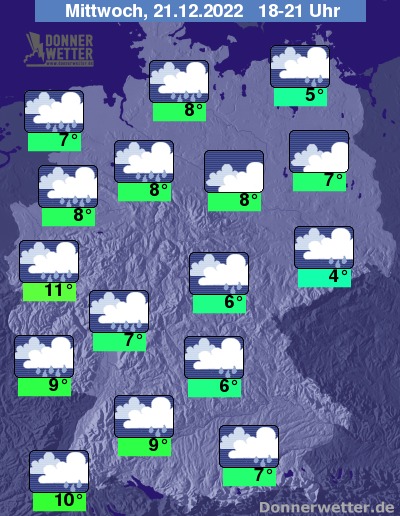 Heute Abend ziehen von Westen noch kompakter Wolken durch und es fällt zum Teil länger anhaltender Regen. Die Temperatur liegt bei 4 Grad in Dresden und 11 Grad in Köln.
