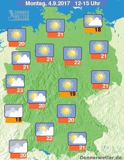 Heute Nachmittag scheint über Deutschland häufig die Sonne. Vom Ober- bis zum Mittelrhein zieht sich die Bewölkung jedoch oft zu, sonst bewegen sich meist nur lockere Wolkenfelder übers Land und vor allem über der Nordosthälfte der Republik ist es auch verbreitet sonnig. Es bleibt überall trocken bei 18 Grad im Saargau und bis 23 Grad im Rheinland.