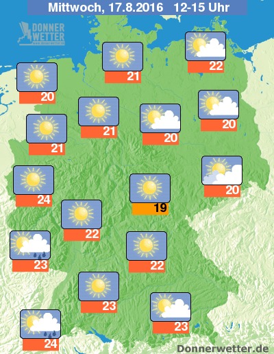 Heute Abend bleibt es im Land verbreitet heiter oder sonnig und trocken. Einige Quellwolken ziehen jedoch hier und da über den Südwesten und das Alpenvorland hinweg, dabei können sich einzelne Schauer oder Gewitter entwickeln. Die Abendtemperatur liegt bei 20 Grad im Vogtland und um 25 Grad in Freiburg.