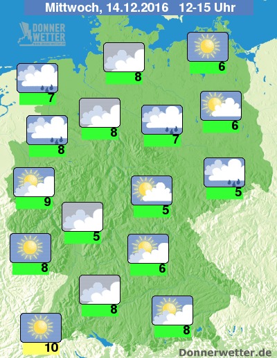Dazu Temperaturen um 6 Grad C an der Ostsee und um 10 Grad C in Freiburg.