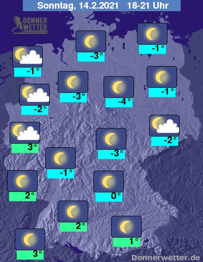 Heute Abend bleibt es noch überwiegend sternenklar oder gering bewölkt. In den westlichen Landesteilen ziehen allerdings mehr und mehr Wolken her, dazu bleibt es trocken. Die Temperatur liegt bei -4 Grad in Magdeburg und bis 3 Grad in Köln.