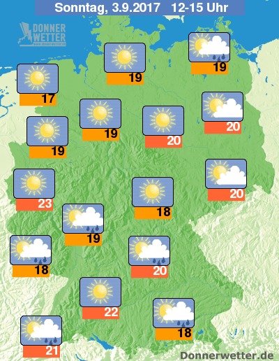 Heute Nachmittag zeigt sich vor allem der Norden und Westen des Landes meist sehr sonnig und dazu trocken, aber auch sonst scheint häufig die Sonne und nur hier und da können einige, teils dichte Wolken auch für Schauer sorgen. Die Temperatur liegt bei 17 Grad an der Nordsee und etwa 23 Grad im Raum Köln.