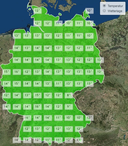 Höchstwerte am Donnerstag Nachmittag