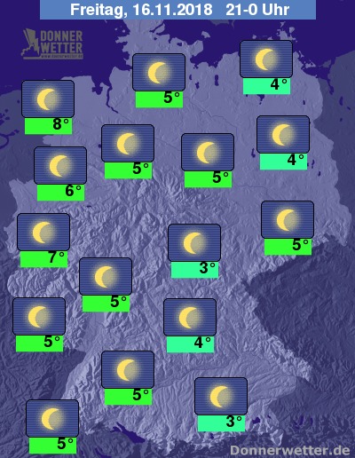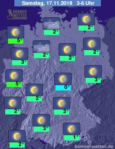 Bis zu den Frühstunden kühlt sich die Luft in bewohnbaren Bereichen auf 0 bis 5 Grad ab, außerhalb von Ortschaften wird es jedoch kälter und es droht Frost.