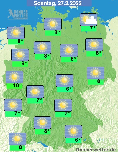 Am Sonntag sind im Nordosten und Osten gebietsweise einige Wolken möglich, ansonsten scheint aber verbreitet die Sonne. Bei Höchstwerten von 6 Grad in München und bis 10 Grad in Köln bleibt es trocken.