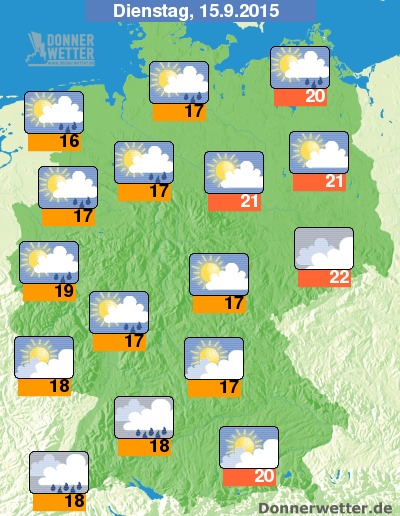 Am Dienstag erwartet uns meist ein Mix aus Sonne und einigen, vor allem nach Westen hin oft auch dichten Wolken, dabei sind über der Westhälfte der Republik zeitweise Schauer und seltener auch Gewitter möglich, auch im Ostseeumfeld bilden sich einzelne Schauer. Im übrigen Land bleibt es bei zumeist wechselnder Bewölkung aber weitgehend trocken. Die Temperatur steigt auf kühle 16 Grad an der Nordsee und bis 22 Grad in Leipzig. Dazu weht an der Nordsee und in den norddeutschen Mittelgebirgen ein oft starker bis stürmischer Wind mit möglichen Sturmböen, aber auch sonst ist es vor allem im Norden und Westen teils stürmisch.