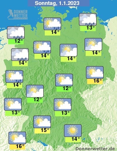 Am Sonntag ist es im Süden oft heiter, dabei bleibt es trocken. Im Norden und Westen ist es überwiegend bedeckt und es fällt gebietsweise Regen, sonst ist es meist stark bewölkt, aber trocken. Die Temperatur steigt auf 12 Grad an der Nordsee und bis 16 Grad in der Lausitz. Im Norden ist es zum Teil stürmisch, an den Küsten herrscht auch Sturm.