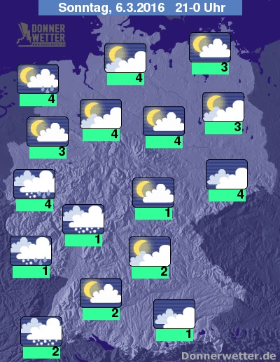 Heute Abend fällt in einem breiten Streifen vom Breisgau bis ins südlichen NRW Regen, Schneeregen oder Schnee, dabei besteht teils Glättegefahr! In den anderen Landesteilen zieht oft wechselnde, vor allem in den östlichsten Landesteilen auch oft starke Bewölkung durch, dazu bleibt es allerdings weitgehend trocken. Die Abendtemperatur liegt bei 4 Grad in Hannover und um 1 Grad in München.