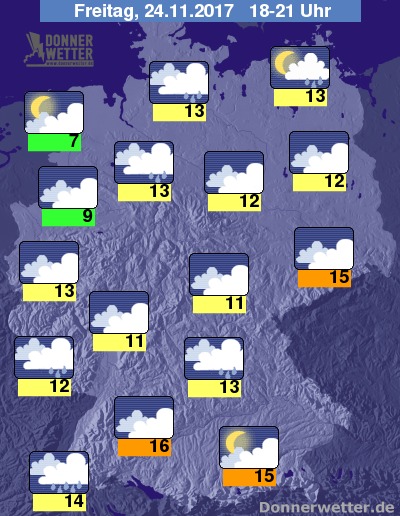 Dazu wird es vor allem im Süden und Osten noch einmal angenehm mild. Die Höchstwerte erreichen hier bis zu 16 Grad. Im äußersten Nordwesten ist hingegen bereits deutlich vor der 10 Grad Marke Schluss.