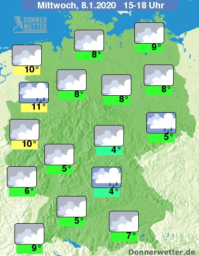 Bis zum frühen Abend ändert sich an den Bewölkungs- und Temperaturverhältnissen recht wenig. Der Regen legt jedoch gebietsweise größere Pausen ein