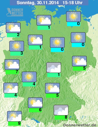 Heute Nachmittag hält sich besonders im Süden und in der Mitte des Landes häufig eine zähe Hochnebeldecke, die sich nur gebietsweise auch auflösen kann. Weiter nach Norden ist es ebenfalls teils trüb oder hochnebelartig bewölkt, teils aber auch sonnig oder nur leicht bewölkt und es bleibt ebenso trocken. Die Temperatur liegt bei 0 Grad an der Müritz und 9 Grad am Alpenrand.