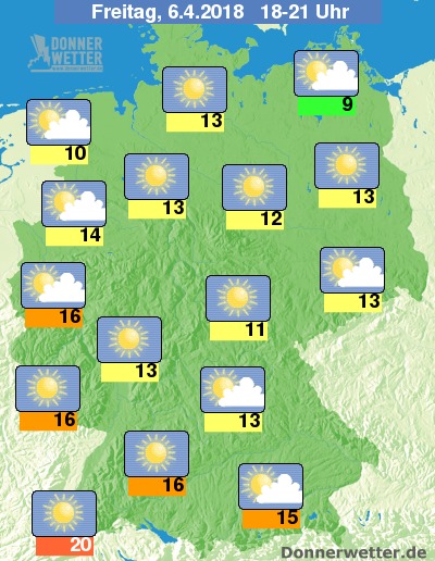 Dazu klettern auch die Temperaturen kräftig nach oben. Nur an den Küsten werden kaum mehr als 10 Grad erreicht, dafür liegen die Höchsttemperaturen vor allem an Rhein und Donau bei Werten um die 15 Grad, in Südbaden sind sogar bis zu 20 Grad möglich.