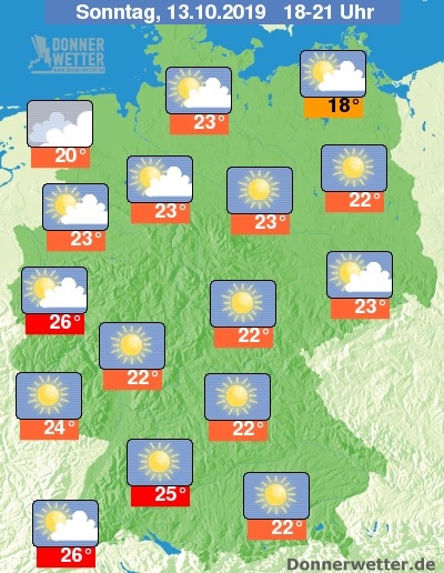 Heute Abend herrscht verbreitet heiteres bis sonniges und dabei trockenes Spätsommerwetter. Lediglich im Norden und Nordwesten können oft einige und teils dichte Wolken aufziehen, dabei ist regional Regen möglich, sonst bleibt es trocken. Die Temperatur liegt bei 18 Grad in Starlsund und bis 26 Grad in Freiburg.