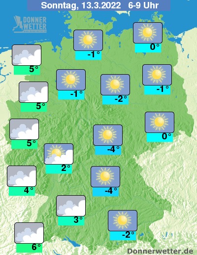 Die Temperaturen liegen bei Werten um -4 in Oberfranken und 6 Grad am Oberrhein.