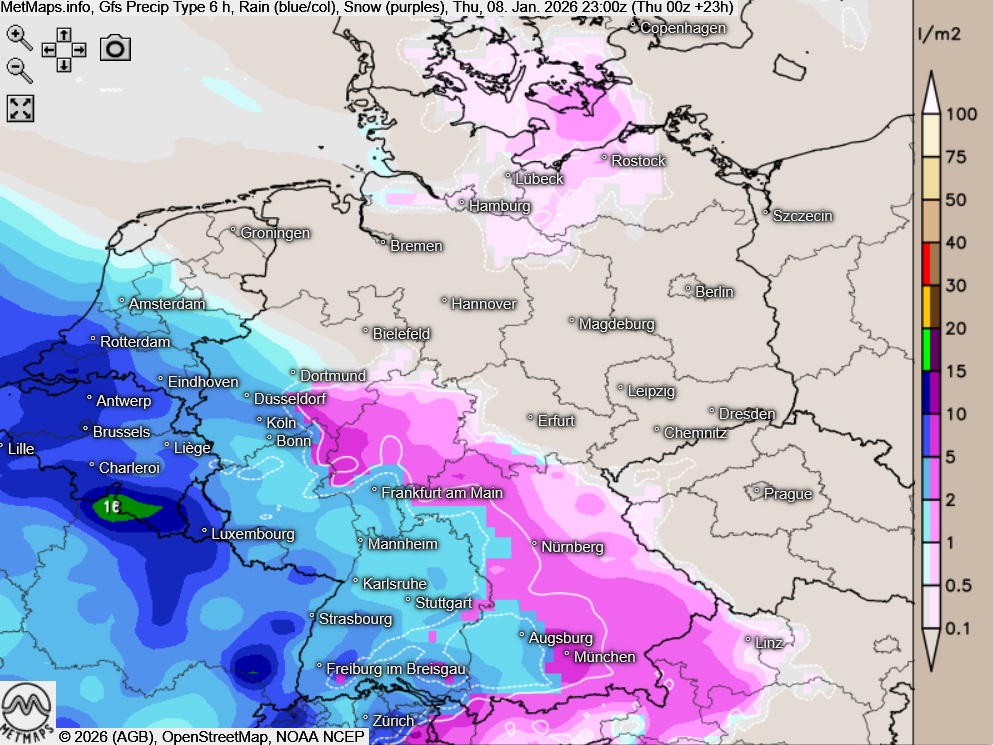 In den nächsten Stunden zeigt sich der Himmel meist stark bewölkt oder bedeckt, dabei zieht am Donnerstagnachmittag und -abend von Westen und Südwesten Niederschlag auf. Zunächst fällt dieser meist als Schnee, im weiteren Verlauf geht dieser auch in gefrierenden Regen über. Vorsicht, Glättegefahr!