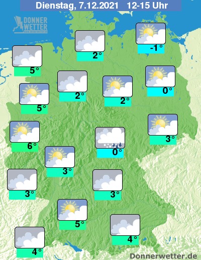 Die Temperaturen erreichen am Nachmittag Höchstwerte um -1 Grad an der Ostseeküste, 4 Grad im Saarland und um 6 Grad im Rheinland.