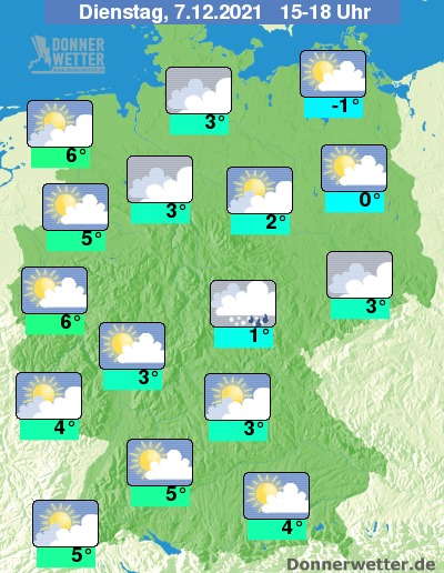 Temperaturen am Nachmittag um -1 bis 6 Grad.