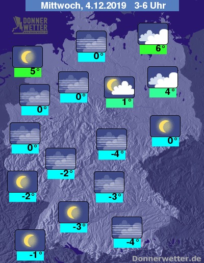Die Temperaturen sinken auf Werte um 5/6 Grad an den Küsten un um -4 Grad im Thüringer Wald.