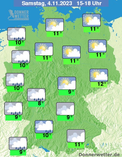 Am Nachmittag kommen dichte Wolken mit Regen im Gepäck ostwärts voran und erreichen am Abend Elbe und Oberfranken. Bei wechselnder bis aufgelockerter Bewölkung überwiegend trocken bleibt es östlich der Elbe.
