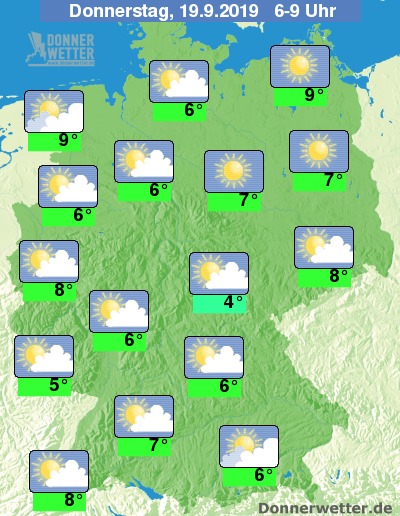 Der Donnerstag startet verbreitet heiter oder nur locker bewölkt, nur an den Küsten und am Alpenrand ist es teils auch aufgelockert bewölkt. Im Nordosten scheint die Sonne stellenweise sogar von einem wolkenlosen Himmel. Es bleibt trocken.