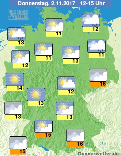 Das Thermometer klettert dazu auf Höchstwerte zwischen 11 Grad in Schleswig-Holstein und auf bis zu 16 Grad in Sachsen und Bayern.