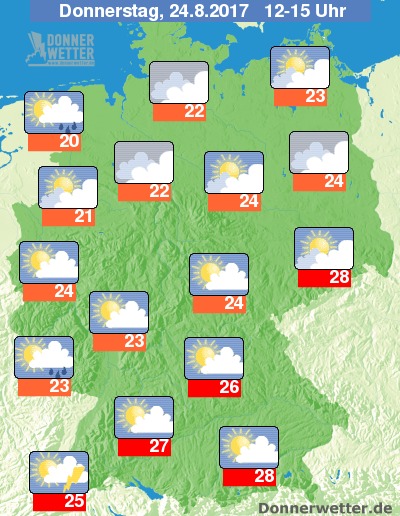 Bis zum Abend nimmt die Quellwolkenbildung im Süden zu und insbesondere südlich der Donau kommt es nun immer häufiger zu Schauern und Gewittern Die Höchstwerte liegen am späten Nachmittag zwischen 20 Grad an der Nordsee und 28 Grad am Alpenrand und im Erzgebirge.