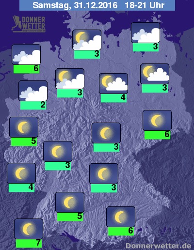 Heute Abend halten sich über dem Norden viele und oft dichte Wolken, dabei fällt vom Nord- bis zum Ostseeumfeld auch gebietsweise Regen, sonst bleibt es trocken. Weiter nach Süden hin zeigt sich ein weitgehend sternenklarer Himmel und es bleibt trocken. Die Abendwerte liegen bei 2 bis 7 Grad.