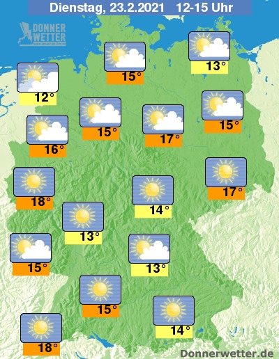 Heute Nachmittag ist es verbreitet heiter bis sonnig, im Norden und Nordwesten ziehen allerdings gebietsweise dichte Wolken durch, dabei bleibt es trocken. Die Temperatur steigt auf etwa 12 Grad an der Nordsee und bis etwa 18 Grad entlang des Rheins.