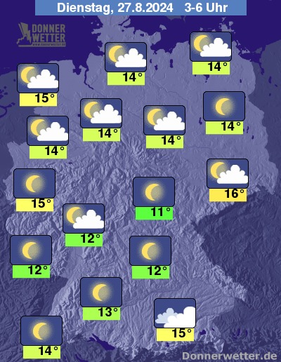 Die Temperaturen gehen in den frühen Morgenstunden zurück auf Werte um 16 bis 11 Grad.