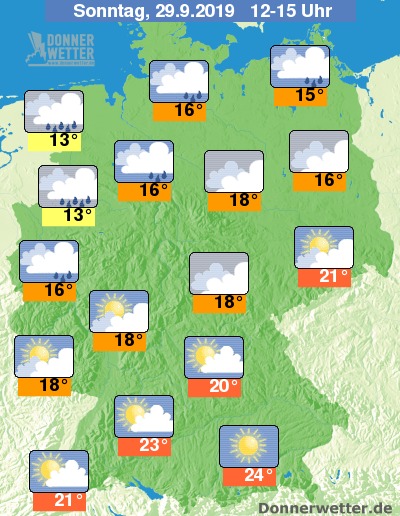 Heute Nachmittag scheint vor allem südlich des Mains häufig die Sonne, hierbei bleibt es auch trocken. Über der Nordwesthälfte ziehen hingegen dichte Wolken hinweg, die hier zeitweise Regen bringen. Im übrigen Bundesgebiet ist es zwar oft stark und nur hin und wieder auch aufgelockert bewölkt, dazu bleibt es aber weitgehend trocken. Die Temperatur steigt auf herbstlich kühle 13 Grad an der Ems und bis24 Grad in München.