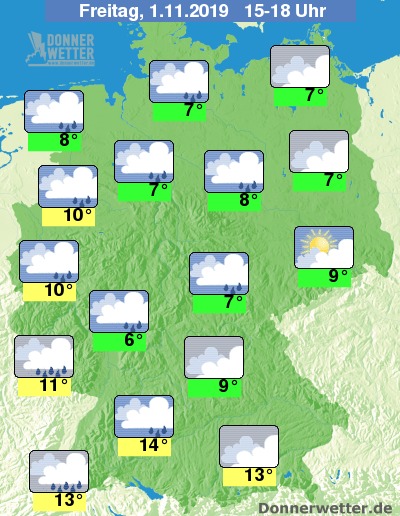 Bis zum frühen Abend breiten sich die Regenwolken weiter Richtung Nordosten aus, trocken bleibt es aber zunächst noch in Gebieten nordöstlich der Elbe und im südöstlichen Bayern.