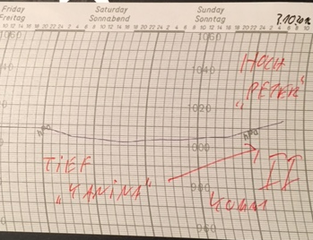 Das Tief "Yanina" zieht heute nach Osten ab und für zwei Tage macht sich Hochdruckeinfluss breit. Der Luftdruck steigt auch jetzt schon deutlich an, wie man hier sieht: