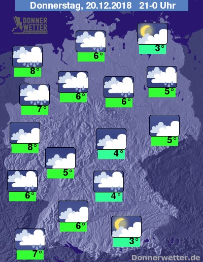 Bis Mitternach sind eventuell an der Ostsee, sowie in Südbayern auch mal Mond und einige Sterne zu sehen. Sonst nimmt der Regen vor allem im Nordwesten zu.