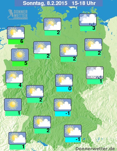 Heute Nachmittag ist es verbreitet heiter und die Sonne kann sich häufig zeigen, besonders nach Westen hin zeigt sich sogar ein zum Teil wolkenloser Himmel, dazu bleibt es überwiegend trocken. Im Nordosten, sowie in Teilen Ostdeutschlands können dichte Wolken jedoch für zeitweise etwas Regen, Schneeregen oder Schnee sorgen. Die Temperatur liegt bei -1 Grad am Alpenrand und 6 Grad an der Ems.