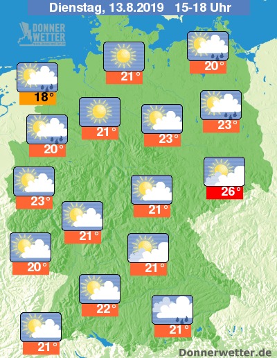 Die Temperaturen bewegen sich zwischen 17 Grad im Nordseeumfeld und 26 Grad in Teilen von Sachsen.