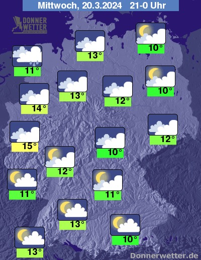 In der Nacht auf Donnerstag nimmt die Bewölkung dann auch über der Mitte und dem Süden zu. Im Norden muss weiterhin mit einzelnen Schauern gerechnet werden, in den übrigen Landesteilen bleibt es meist trocken.