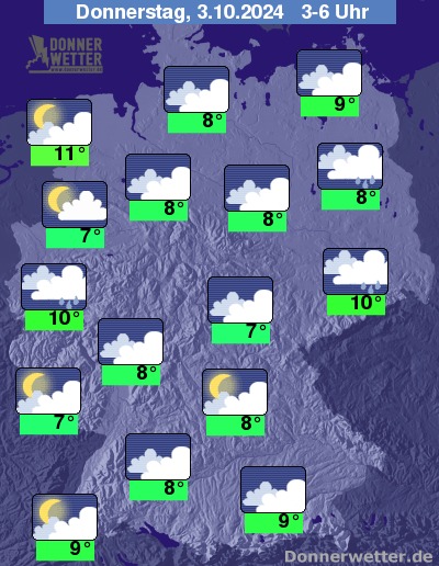 In der Nacht zum Donnerstag lockern die Wolken im Norden und Nordwesten auf, sonst dominiert weiterhin starke Bewölkung. Im Osten fällt dabei noch Regen, in den übrigen Landesteilen bleibt es zumeist niederschlagsfrei.