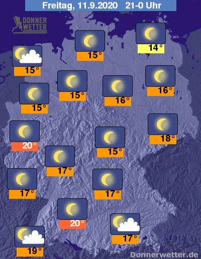 Am frühen Abend liegen die Temperaturen zwischen 18 Grad an den Küsten und spätsommerlichen 26 Grad an Rhein, Mosel und Neckar.