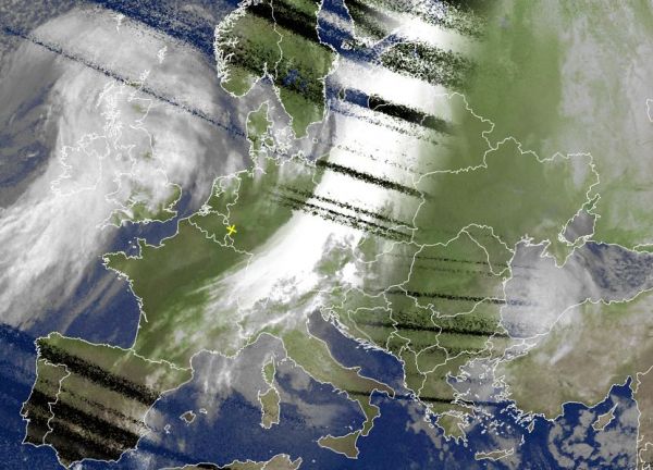 Das Satellitenbild von heute Morgen zeigt ein breites Wolkenband, das sich von den westlichen Alpen, über Süddeutschland, weiter über Teile Ostdeutschlands, nach Polen und bis zum Baltikum hin erstreckt. Unter diesen Wolken fiel aber nur noch hier und da etwas Regen. Über der Nordwesthälfte Deutschlands zeigt sich auf dem Bild dagegen meist nur geringe Bewölkung, hier begann der Tag verbreitet freundlich und trocken.