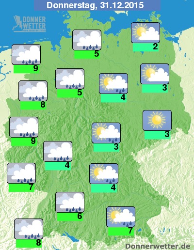 Am Donnerstag ist es in den östlichsten Landesteilen zunächst noch oft heiter bis sonnig und trocken. Westlich einer Linie vom Schwarzwald bis zur Nordsee fällt unter dichten Wolken zeitweise Regen, der sich im Tagesverlauf weiter nach Osten hin ausbreitet, und über der Osthälfte dann teils in Schneeregen oder Schnee übergehen kann. Dazu kann es stellenweise glatt auf den Straßen werden! Im Nordosten, äußeren Osten und Südosten bleibt es bis zum Abend noch weitgehend trocken. Die Temperatur steigt auf 2 Grad in Vorpommern und bis etwa 9 Grad im Rheinland. Im Norden weht ein teils starker, an den Küsten ein starker und zum Teil stürmischer Wind.