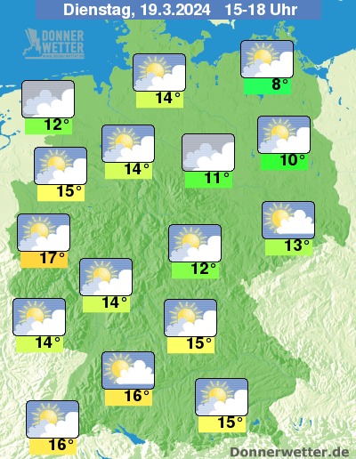 Temperaturen am Nachmittag um 8 bis 17 Grad.
