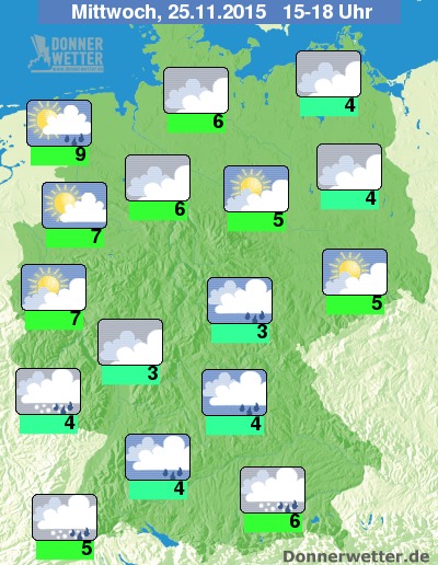 Heute Nachmittag bleibt es vom Süden bis in die Mitte des Landes bedeckt, dazu fällt hier immer wieder Regen oder Schneeregen, zum Teil ist auch Schnee möglich. Besonders im Nordwesten ist es oft nur locker bewölkt, aber auch im Norden und Osten sind hier und da Auflockerungen möglich, dabei bleibt es weitgehend trocken. Die Temperatur steigt auf 3 Grad am Odenwald und bis 9 Grad in Ostfriesland. An der Nordsee weht ein starker und teils stürmischer Wind.