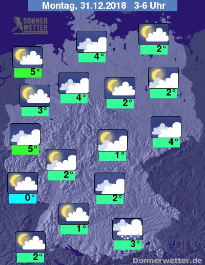 Der letzte Tag des Jahres bringt zwar teils den erhofften Schnee, doch nur rund um Oberbayern. Der Rest des Landes hat dafür Chancen auf Sonne. Die Temperaturen erreichen Höchstwerte von 8 Grad C im Emsland und 5 Grad C in Stuttgart.