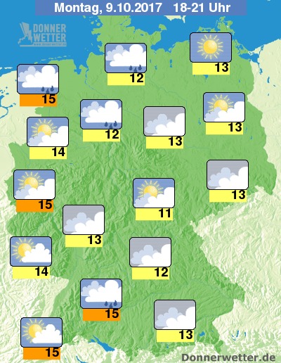 Heute Abend halten sich über Niedersachsen und Schleswig-Holstein dichte Wolken und heir fällt zeitweise Regen, sonst ist es meist stark oder aufgelockert bewölkt und von vereinzelten Schauern abgesehen trocken. Im Nordosten ist es meist sonnig und trocken. Die Temperatur liegt bei 11 bis 15 Grad.