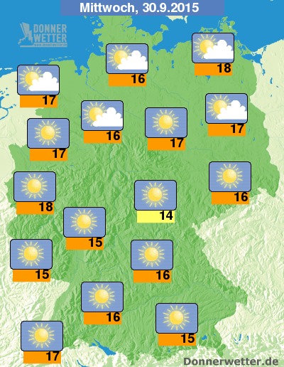 Am Mittwoch erwartet uns wieder ein verbreitet sonniger Tag mit nur selten ein paar Wolken. Im Norden ziehen hingegen zeitweise auch einige Wolken durch, dazwischen scheint aber häufig die Sonne. Es bleibt überall trocken, dabei steigen die Temperaturen auf 14 Grad im Grabfeld und bis 18 Grad in Neubrandenburg.